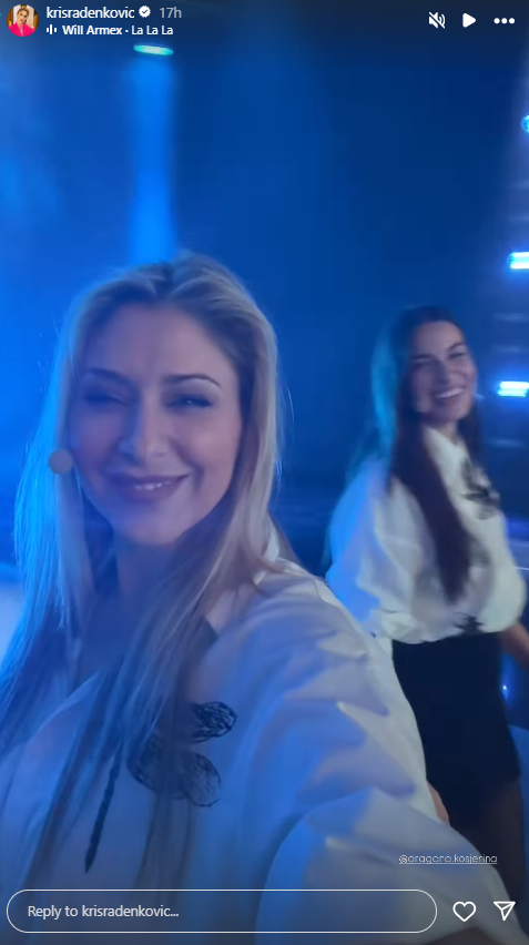 Водитељке Кристина Раденковић и Драгана Косјерина спремне су за вечерашњи спектакл. Кристина је на свом Инстаграм профилу објавила снимак на ком Драгана упада у кадар. Њих две су позирале насмејане, а по свему судећи све је спремно за прво полуфинале "Песме за Евровизију".