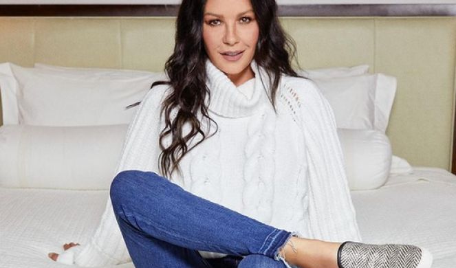 Velšanka Ketrin Zita Džons (51) upravo je objavila fotografiju na kojoj u svom domu sedi na trosedu, a obučena je u farmerke i beo džemper. Na nogama su platnene patike bez pertli sa dezenom riblja kost.
