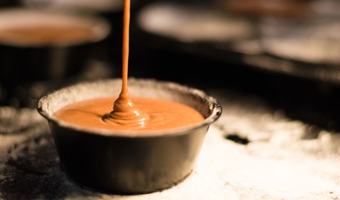 - Otopite puter, pa dodajte kuvano kondenzovano mleko. Mutite sve dok ne dobijete homogenu smesu. Potom ubacite tu smesu u poslastučarsku kesu sa probušenim vrhom.