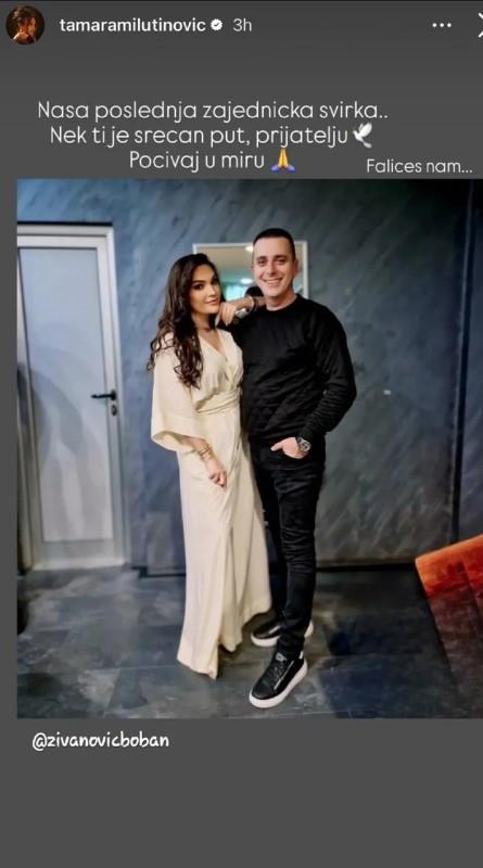 - Naša poslednja zajednička svirka... Nek ti je srećan put, prijatelju. Počivaj u miru. Falićeš nam - napisala je Tamara Milutinović u Instagram priči i dodala emodži bele ptice, kao simbol mira.