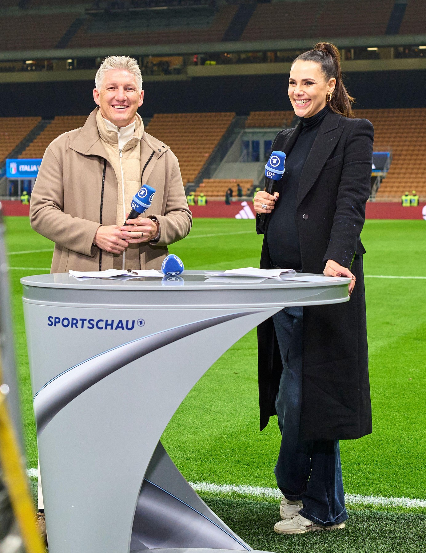 📸 Bastian Schweinsteiger and presenter Esther Sedlaczek stand together on the pitch before the match.#ITAGER pic.twitter.com/DYijnotBiK