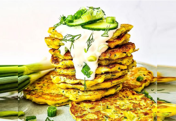 Скувати кукуруз. Процедити и оставити да се прохлади.⠀ Опрати и изрендати тиквице. Посолити и оставити око 15 минута да отпусте воду. Добро их исцедити.⠀