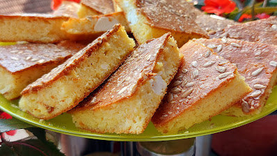 Измутит јаја жицом додати сир и јогурт и мало павлаке, уља, соли ако није слан сир, прашак за пециво са кукурузним и хлебним брашно и све замесити киселом водом.