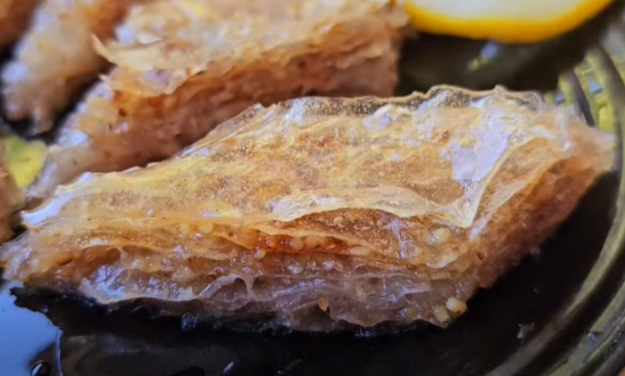 Посећи ножем по жељи и пећи на 200 степени Ц око 30 минута. Док се баклава пече спремити сируп.