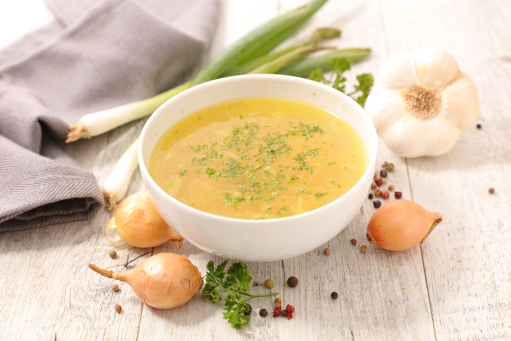 Ситно исецкати црни лук. Можете га, такође, изблендирати или изрендати, јер је тако много ситнији, те се брже издинста и не види се у чорби. Луку додати чашу воде и кашику зачина, па ставити да се динста. За то време припремати бело месо и поврће.