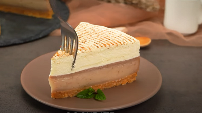 - Склоните са шпорета па додајте испасиране банане. Смесу сипаје преко кекса. Оставите у фрижидеру сат времена.