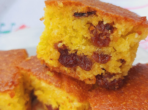 Сипати у плех тесто и изравнати. Пећи на 200 степени Ц око 30-40 мин да лепо порумени. Печен колач исећи на коцке.