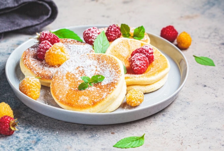 Беланца одвојите од жуманца. У жуманца сипајте сок од поморанџе и млеко, па добро умутите. Онда додајте просејано брашно па све добро промешајте. Засебно умутите беланца са шећером у чврст шче па ту смесу додајте у жуманца. Лагано сједините па сипајте у шприц за колаче. У тигањ са загрејаним уљем истисните смесу па додајте пар капи воде. Поклопите и пржите палачинке 7 минута. Окрените па додајте воду и пржите још 5 минута.
