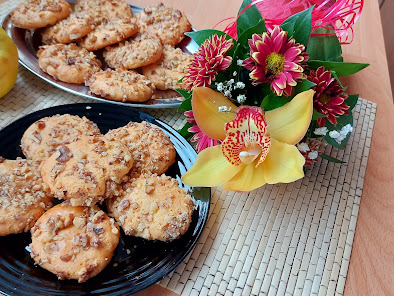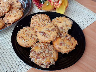 Развити за пола цм и вадити мале колачиће. Сваки колачић провући кроз провучено беланце и умочити у сецкане орахе.Ређати у плех и пећи на 200 степени Ц око 15-17 мин. Прелепи слатки хрскави.
