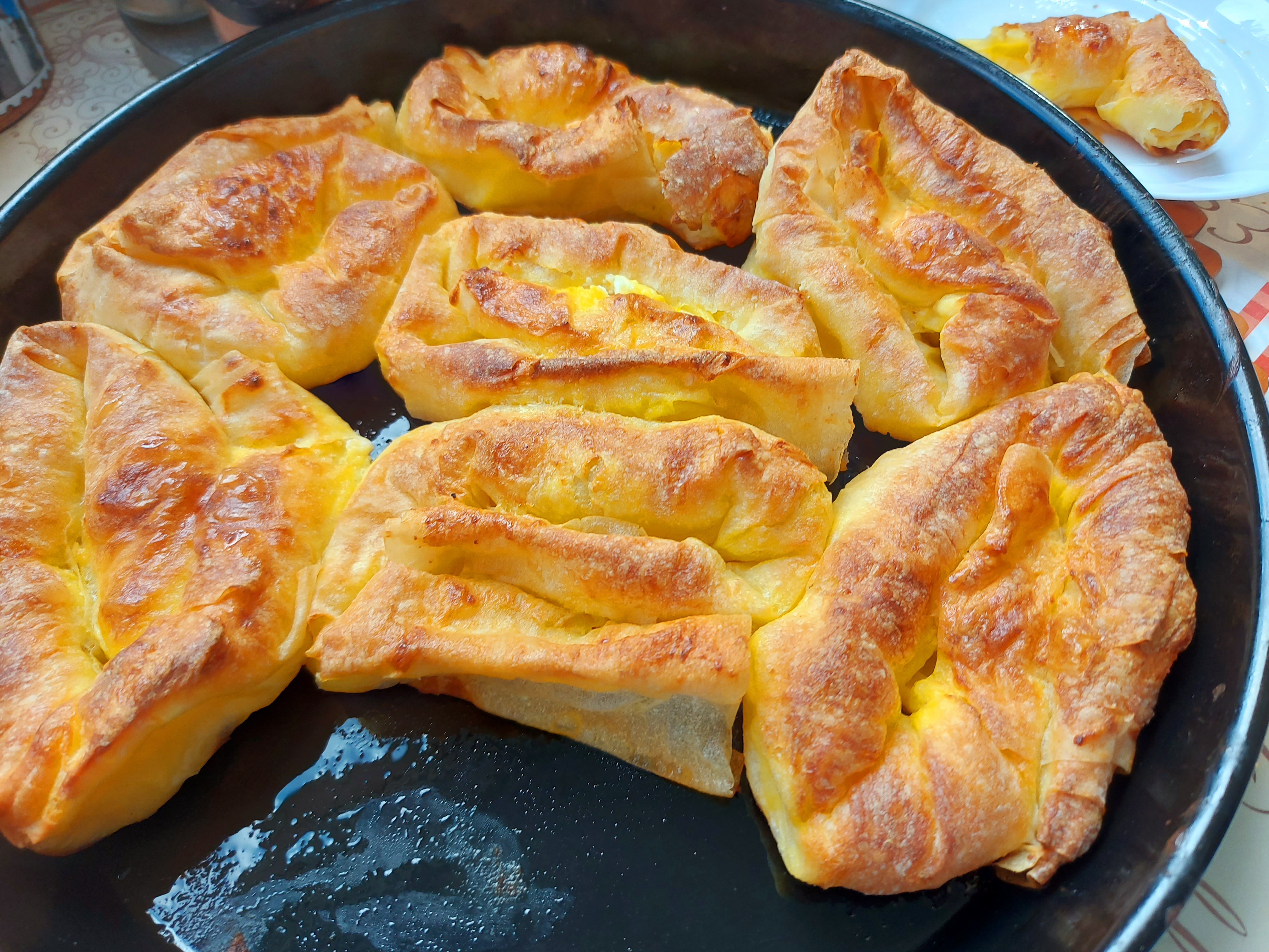 Пећи на 200 степени Ц око 45 мин да добро зарумене и буду хрскаве. Уз чашу јогурта фантастичана хрскава пита коју ће те појести сви у сласт нарочито ако сте гладни.