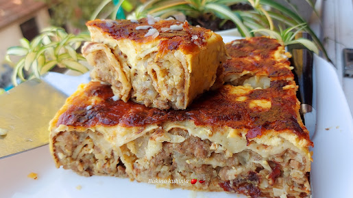 Лук исецкати ситно, па га пропржити, кад постане стакласт додати млевено месо и динстати бар 10 минута да се лепо упржи.