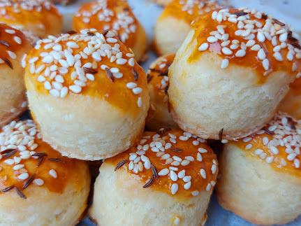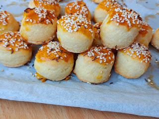 Развити 1,5 цм дебљине. Ја сам измерила једним малим метром да будем сигурна. Вадити чашицом за ракију погачице сваки пут чашицу умочити у брашно и само притиснути. Ређати у плех који сте обложили пек папиром.