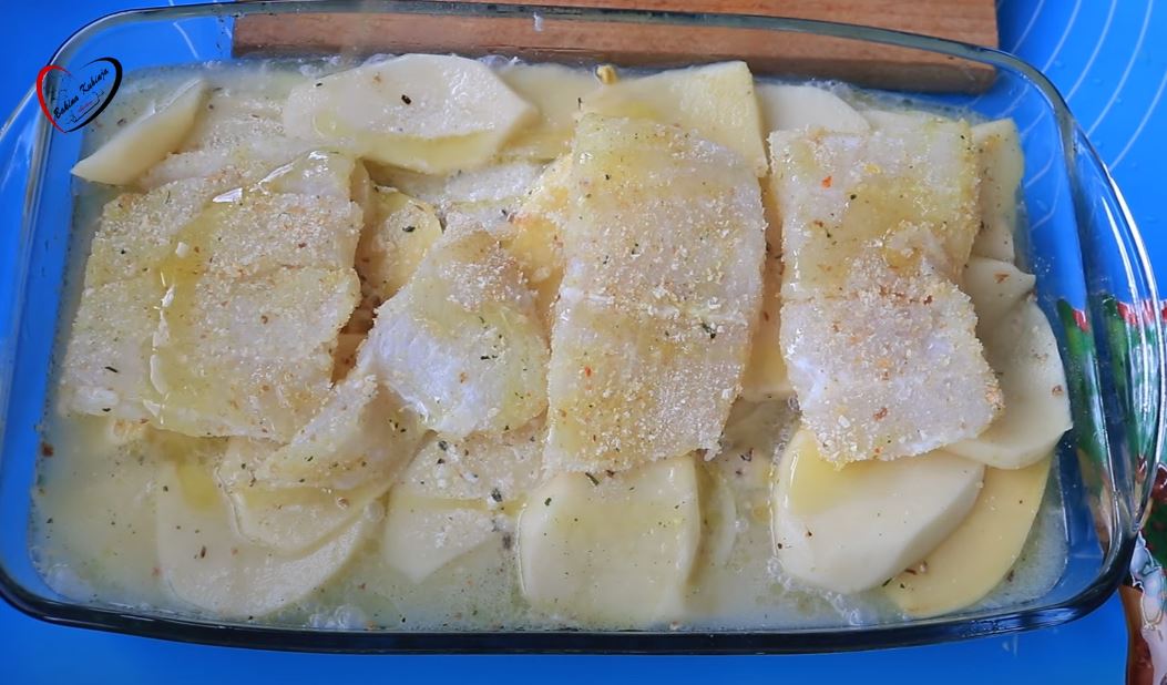 Ако имате неку рибу ставите преко кромира. Покрити мало алуминијском фолијом а пола сата пред крај отките и запеците да лепо порумени.Сјајан кромпир који се једе без хлеба