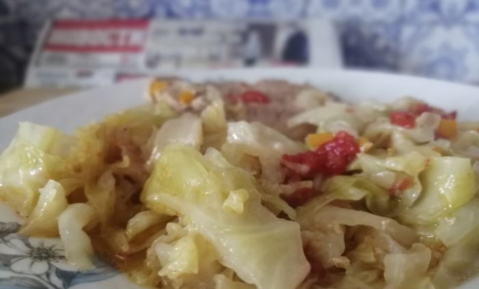 Исече се купус на траке, али крупније него за салату. Месо се очисти од масноће и најбоље је узети свињске шницле, јер су сочније.