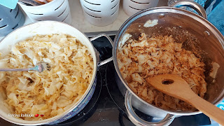На уљу пропрзити рибанац на нижој температури уз често мешање. Додати млевен бибер. Скувати флекице, оцедити и испрати.