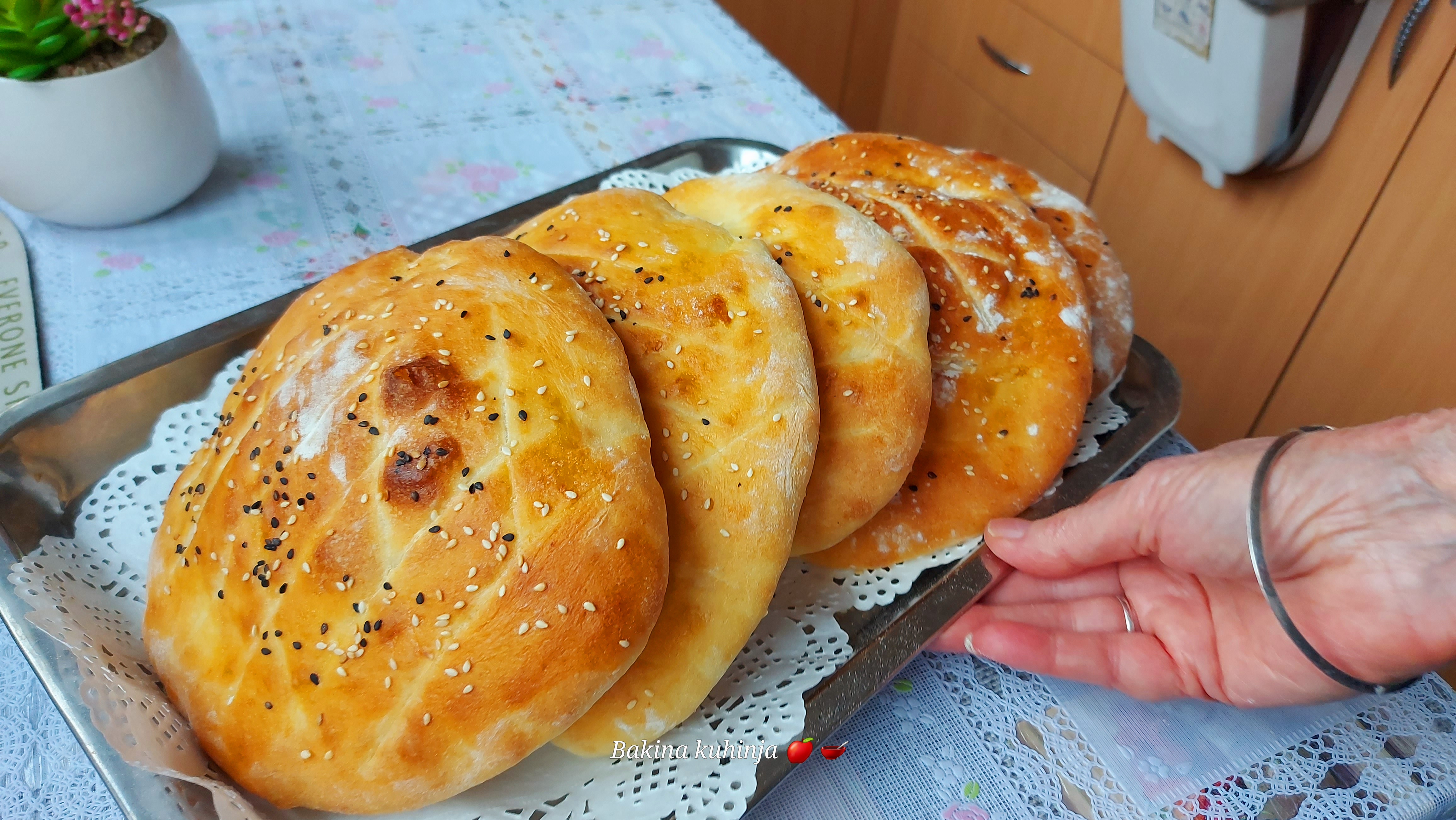 Покрити да одморе, па их посећи тупим ножем и премазати беланцетом или млеком. Посути сусамом Пећи на 250 степени Ц око 7 минута да порумени.