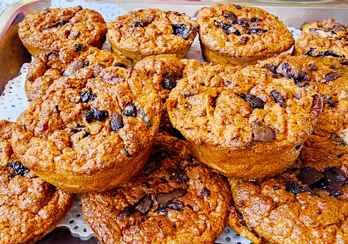 Умутити јаја, по жељи додати шећер, убацити млевене овсене пахуљице са прашком за пециво. Додати јогурт, уље, сецкане шљиве и млевене орахе, сецкану чоколаду, рендане јабуке па све измешати. Вадити кашиком и пунити у мафин корпице. Пећи на 200 степени око 40 - 45 минута.