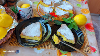 Исцедите сок од једног лимуна, по жељи мозете и мало корице. Округли плех 24 цм обложите дно пек папиром и премажите путером.