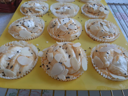 Ређати у папирне корпице па у мафине за проју. Оставити да порасту премазати жуманцетом и посути семенкама