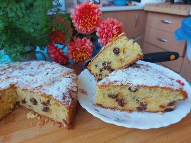 Рерну укључите на 200 степени Ц. Умутити јаја са шећером. Измешати брашно и гриз и просејати у умућена јаја. Додати уље, субо грожђе, корицу лимуна и јогурт. Све полако изједначити. Плех 22 цм подмазати и посути брађном и сипати и изравнатп Пећи на 200 степени Ц око 40-45 мин.