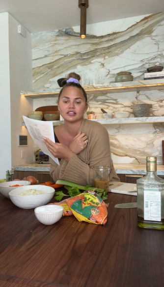 У својој објави, Криси је написала да је одштампала страницу рецепта супе од црвеног сочива и да намерава да га прави уживо, пред фановима.