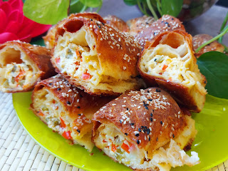На дно ставити трећину сира, савити ивице и увити у ролат. Тако и остале 2 ролнице. Прелити остаком прелива и пећи 50- 60 мин на 180 -190 степени Ц