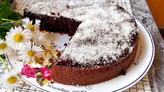 Пећи на 180 степени Ц 50 минута. Одозго иде прелив чоколаде посут кокосом.