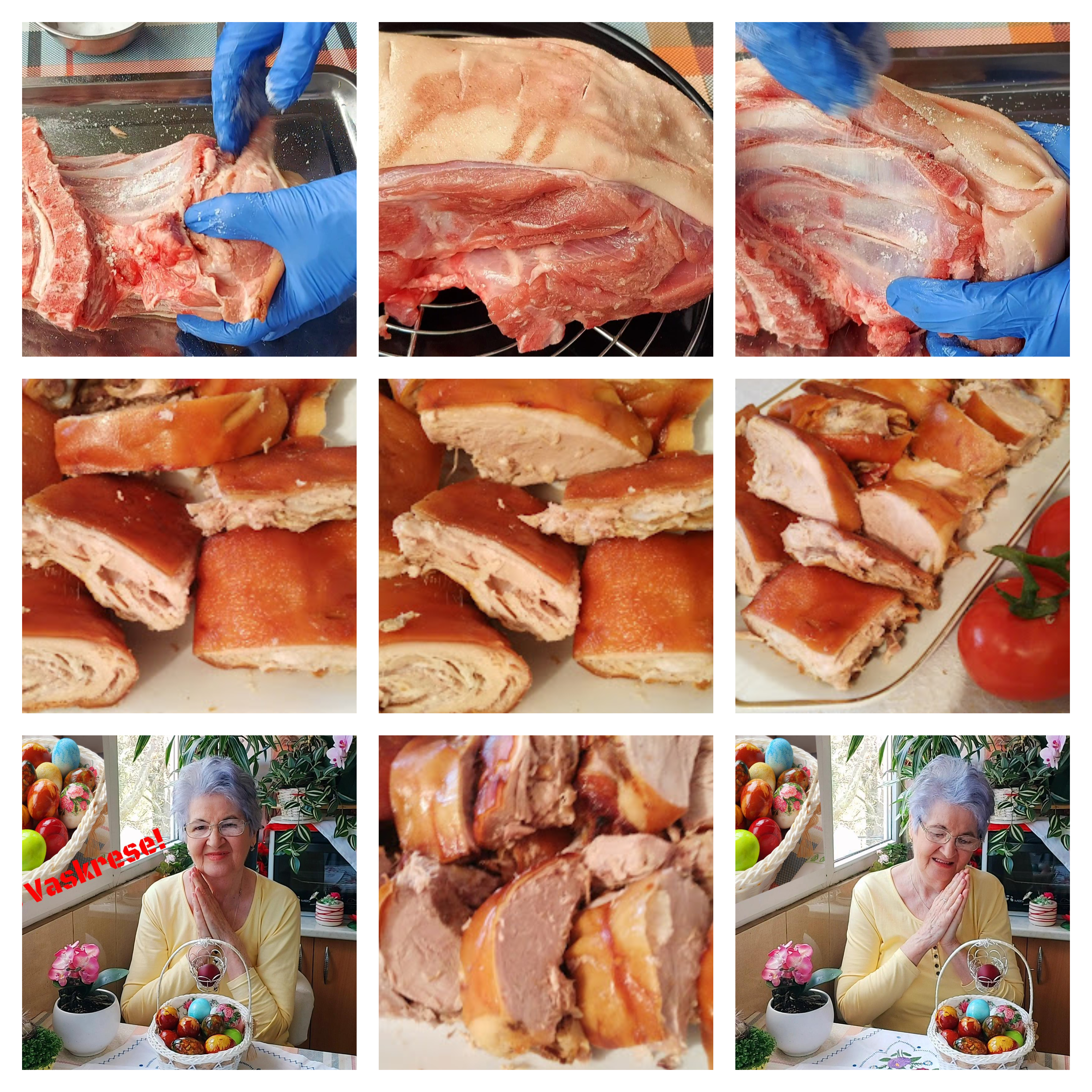 Повремено окретати. Треба рачунати бар 3 сата да се пече у зависности од рерне.