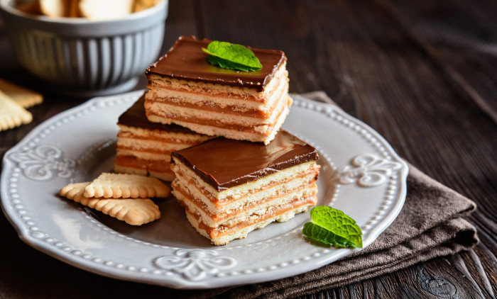 Склонити са шпорета и у врућ фил додати млевени кекс и добро измешати. Фил мало прохладити и топлим мазати обланде. Количина фила је довољна за 4 листа обланде.