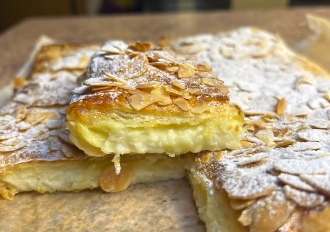 Ако волите једноставне, а неодољиво фине дезерте, овај рецепт ће вас освојити на први залогај. Комбинација кремастог пудинга од ваниле, хрскавог лиснатог теста и мирисних листића бадема права је мала чаролија у којој ћете уживати уз кафу, чај или после ручка.