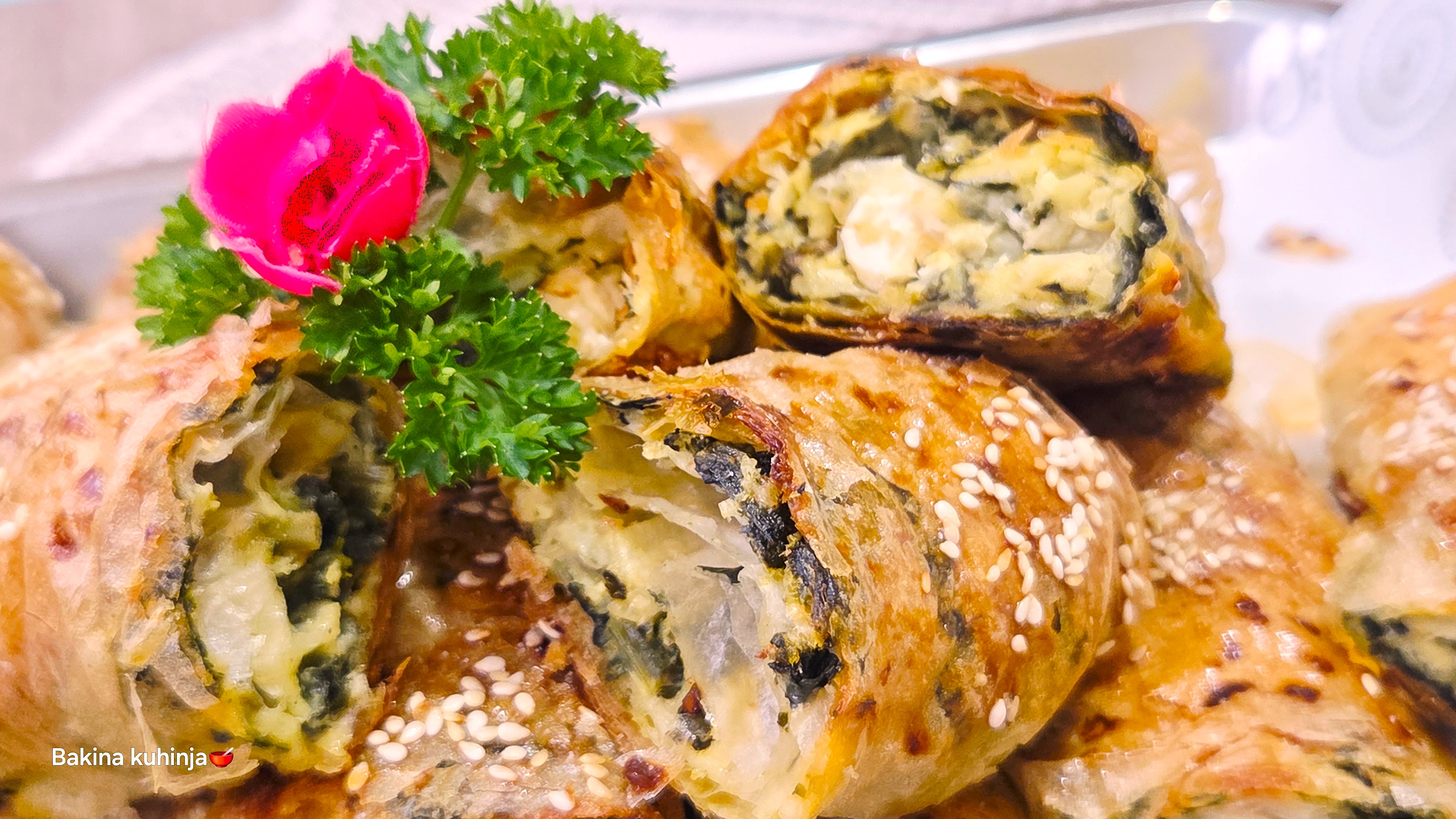 У чинији издробити 200 г сира, па га кратко пропржити на мало уља док не замирише и не постане кремаст. Пропржени сир сједините са спанаћем, празилуком и сецканим белим луком. Додајте два јаја, мало соли и бибера. Све добро промешајте да добијете кремасти надев.