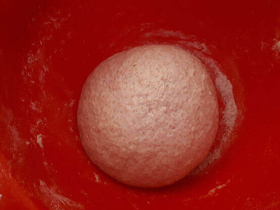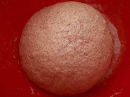 2. Када је тесто надошло, као на слици. Премесите га, ставите на радну површину, посутом интегралним брашном. Поделите тесто на 9 делова
