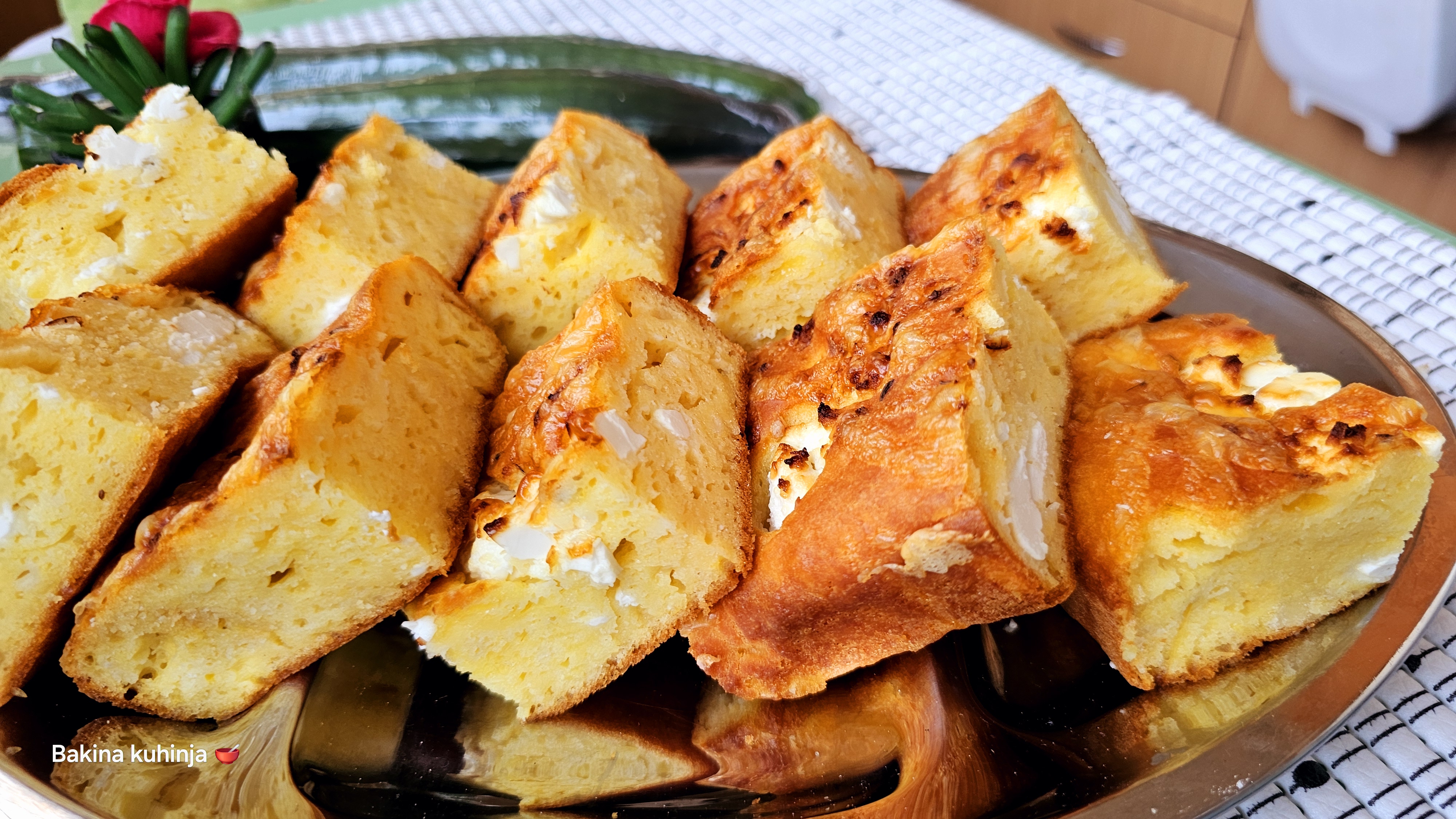 Умутити јаја, додати брашно с прашком за пециво, измрвљен сир, уље, соли, киселу павлаку, киселу воду и све добро изједначити.
