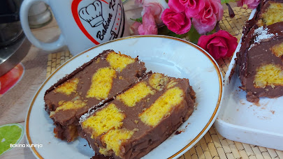 Пудинг скувати у млеку и засладите по зељи, додајте 2 штангле чоколаде и маргарин или маслац. Све изједнацити, па прохладити. Бисквит исећи на коцке, ставити у већу чинију, па сипати одозго пудинг и измешати.