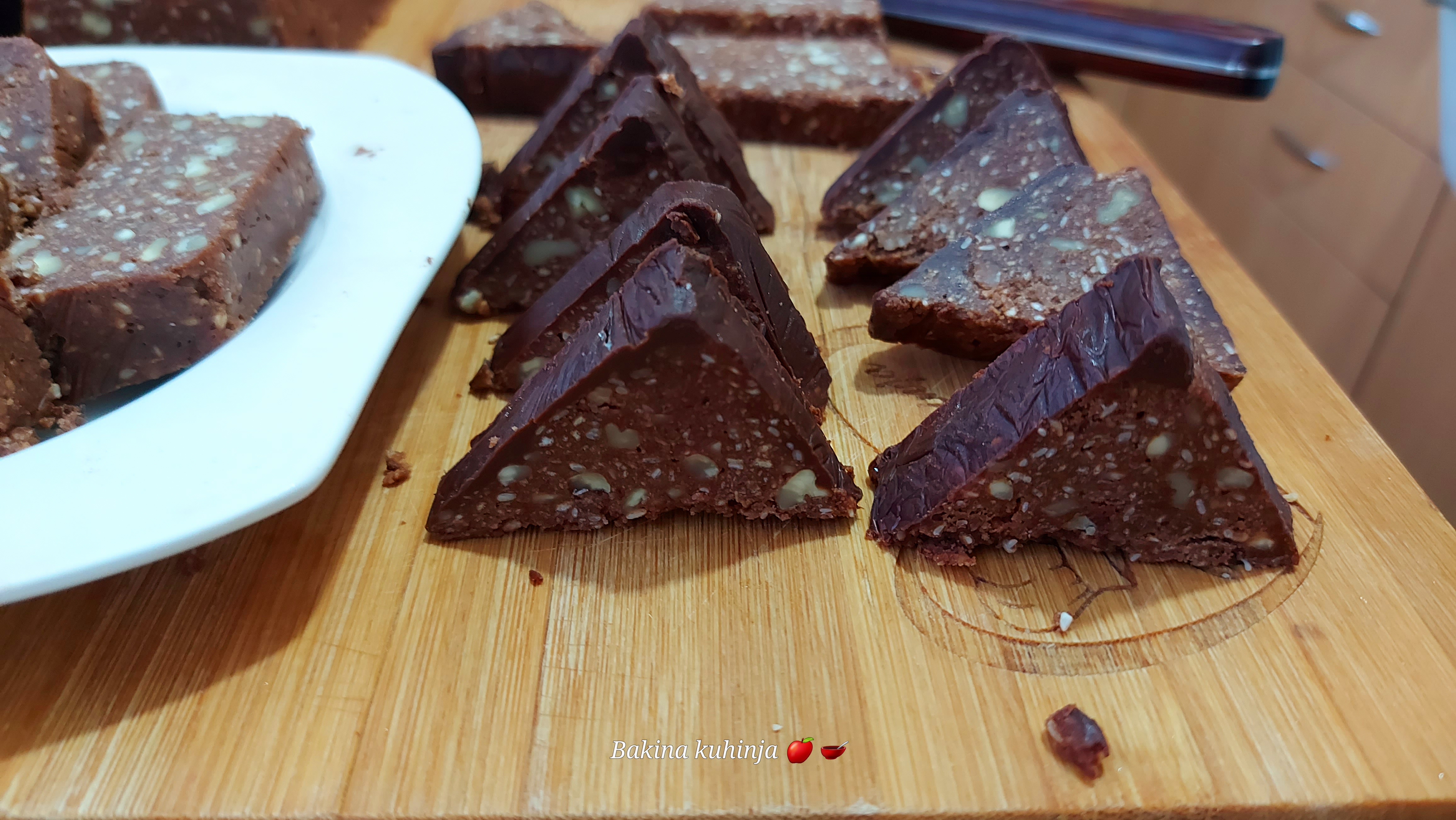 Притиснути и изравнати. Оставити 1 сат у замрзивачу. Сећи и сладити се.