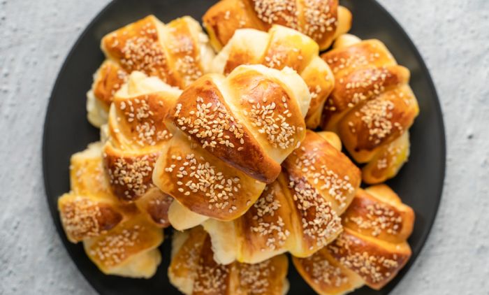 Исеците кору на троугласте комаде жељене величине, па сваки комад уролајте у кифлицу. Поступак поновите са другом половином теста. Кифлице поређајте у плех обложен папиром за печење, премажите их благо посним мајонезом и оставите да надођу око сат времена.
