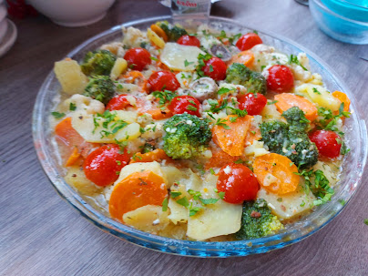 Кромпир и шаргарепу очистити и исећи на колутове. Карфиол и броколи покидати на цветове. Шампињоне опрати ако су крупни исећи на пола. Налити све водом и барити 5-6 мин, не више. Извадити у ванглу полако да се охлади.