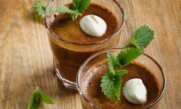 Жуманца, два цела јајета и смеђи шећер мешајте ручно док не постане пенасто. Затим кувајте лагано на пари уз стално мешање. Када смеса буде пенаста, додајте чоколаду и мешајте док не постане глатка. Скините са паре, додајте умућену слатку павлаку, мало помало, како бисте добили фину текстуру, а уколико желите ставите и мало рума. Мус лагано сипајте у чаше, украсите шлагом, воћем, воћним преливом или чоколадном декорацијом.