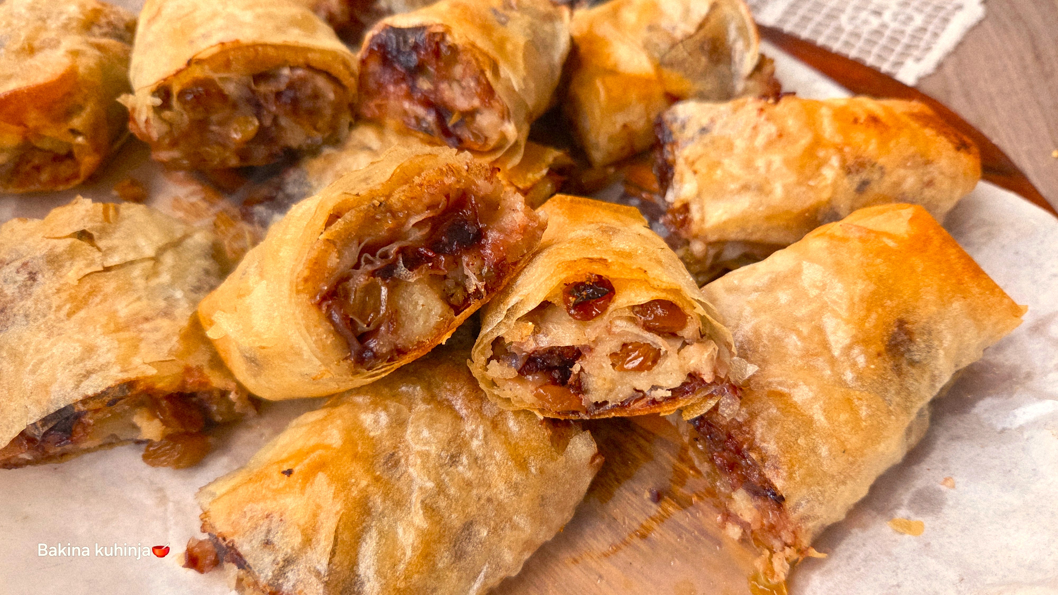 Спојите две коре и сваку премажите са мало уља. На другу кору распоредите две пуне кашике припремљеног гриза. Свуда по гризу побацајте по мало пекмеза од шљива. Увијте ролнице и ређајте у подмазан плех. Ролнице засеците на мање ролате, премажите уљем и пеците четрдесет минута на двеста степени Ц.
