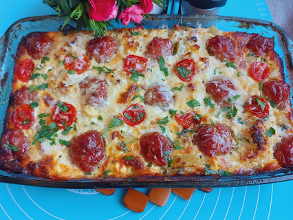 Прелити са спремљеним преливом. Између служити ситне мале ћуфтице. Ћуфтице мало прелити уљем. Пећи на 200 степени Ц око 60 мин.