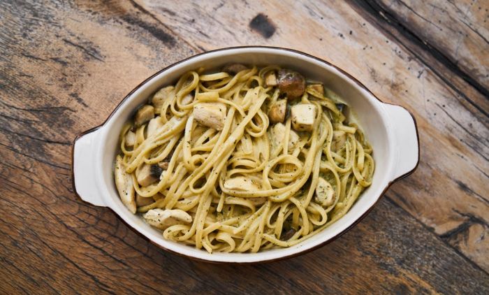 Тестенина ће да упије део соса и додатно омекша. Послужити после 10 до 15 минута од додавања тестенине.