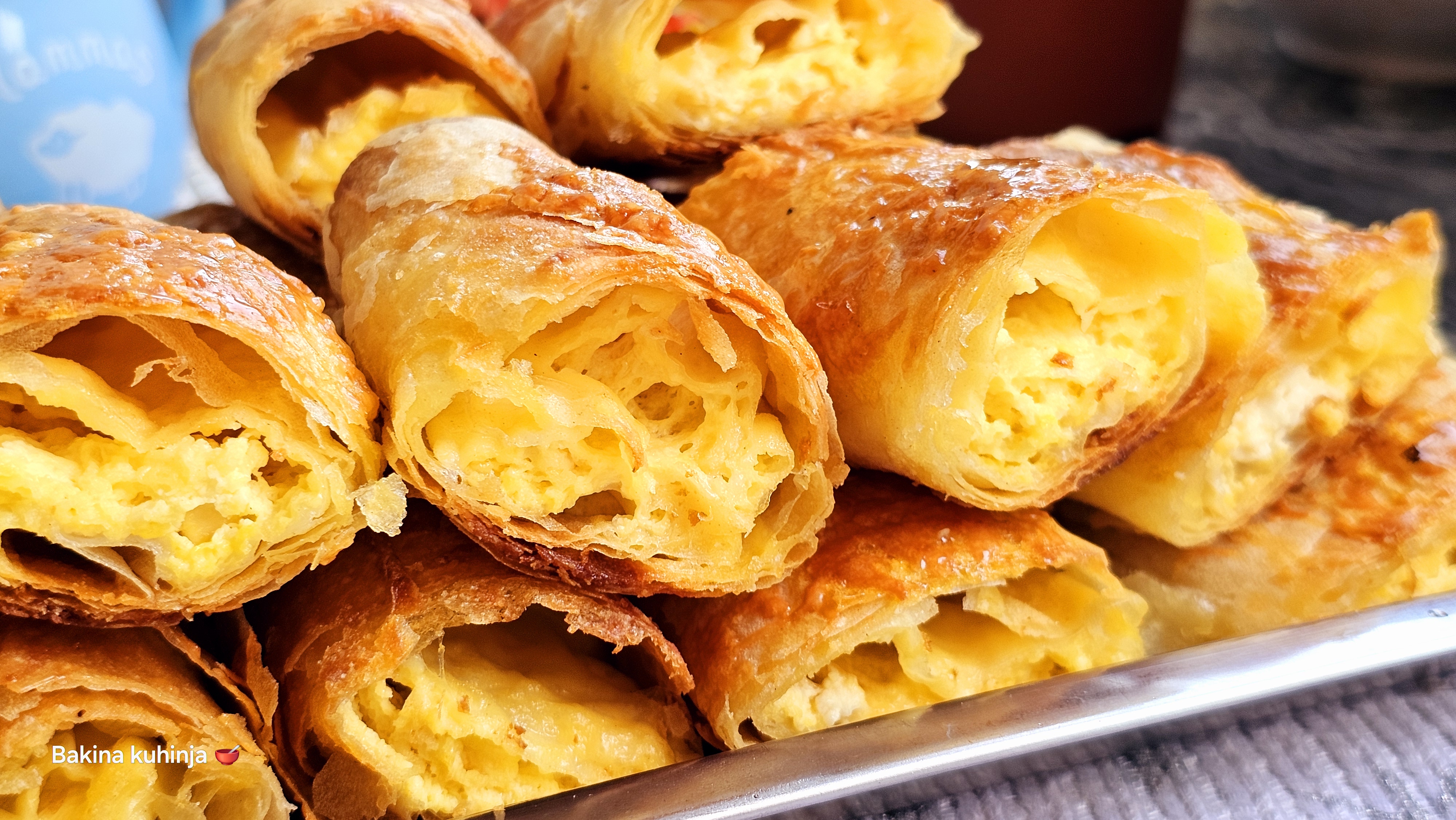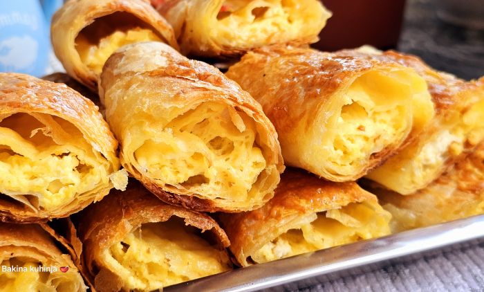 Умутити јаја, додати млеко, уље, брашно и гриз и изједначити. убацити квасац који је мало надошао у мало млаке воде и све измешати да буде гушће него за палачинке. За надев издробити у чинију сир, додати јаја, павлаку, млеко и мало качкаваља и све изједначити.
