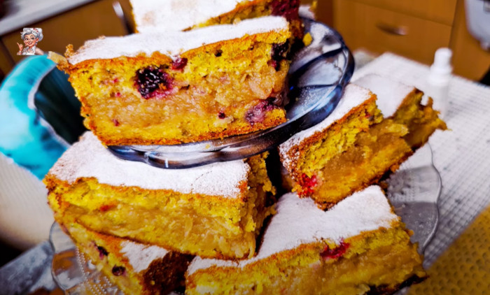 Из бакине кухиње нам стиже рецепт за посластицу која је спој слатких јабука, освежавајућег шумског воћа, мирисног цимета и лимуна и ствара хармонију која ће пробудити сва чула. Цео дом ће мирисати док се пече ова сочна посластица. Хранљив и пун ароме, савршен је за сваку прилику.