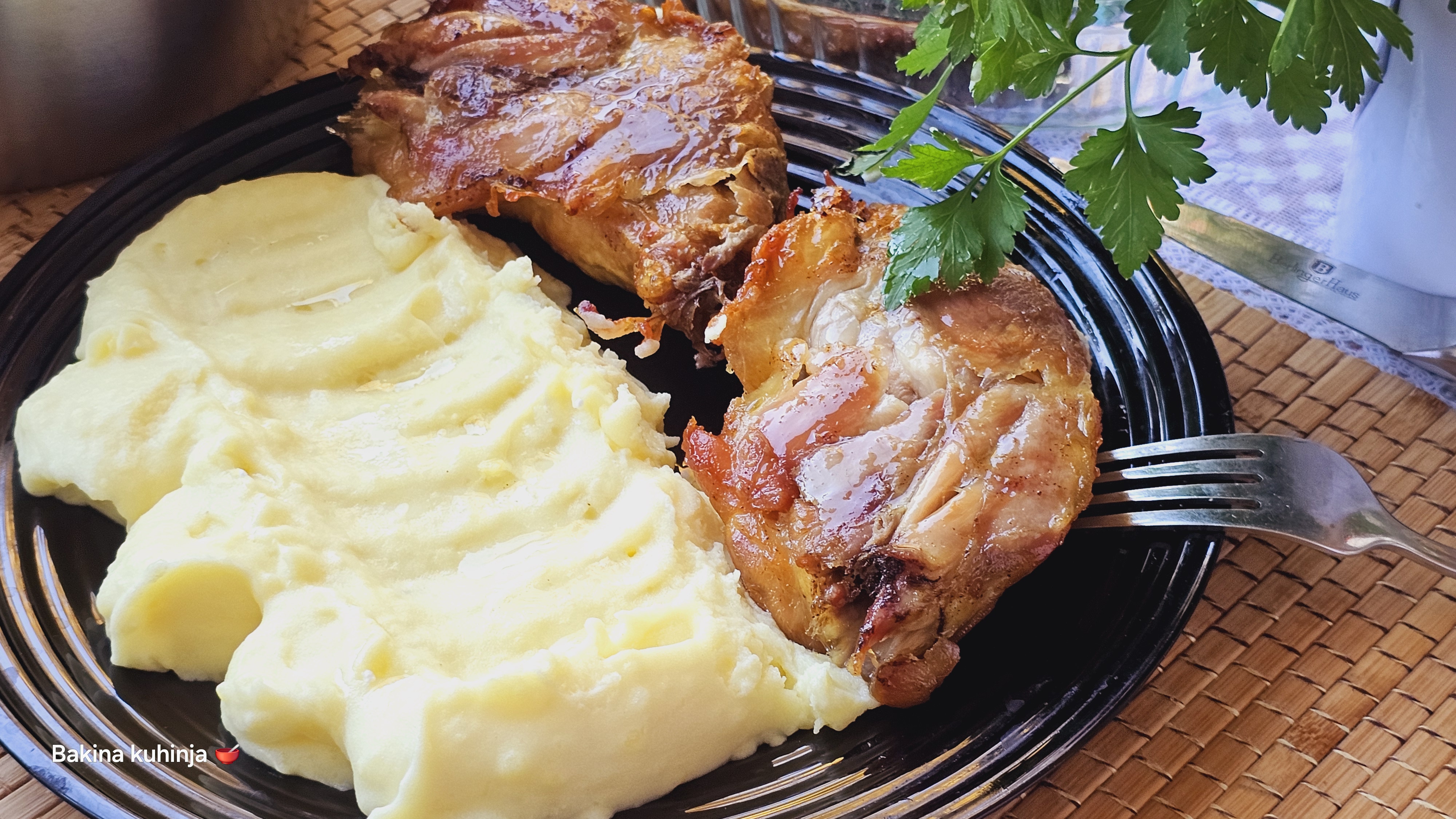 Кромпир очистити и скувати. Изгњечити виљушком, па додати кашику киселе павлаке. Убацити млеко.