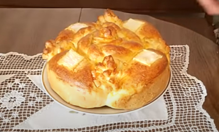 Умешено тесто ставити у ванглицу покрити и оставити на топлом око 30 минута. Затим, тесто изврнути на сто, мало измесити и одвојити 4 једнаке лоптице и једну мало мању. Једнаке ставити у плех који сте обложили пех папиром. На супрот једна другој, унакрсно. Најмању лоптицу ставити у средину.