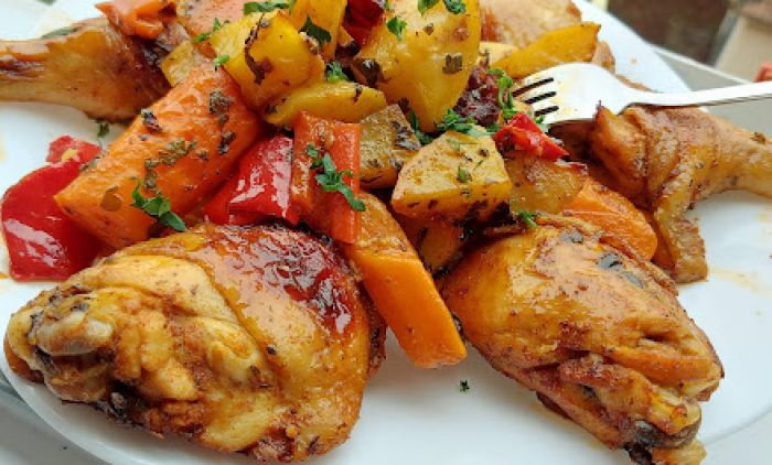 Све састојке измешати, па премазати месо и поређати у кесу. Као прилог можете у остатак маринаде насећи кромпир, шаргарепу и црвену свежу паприку.