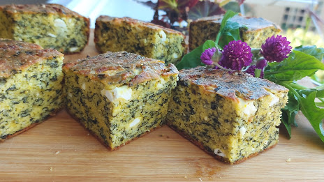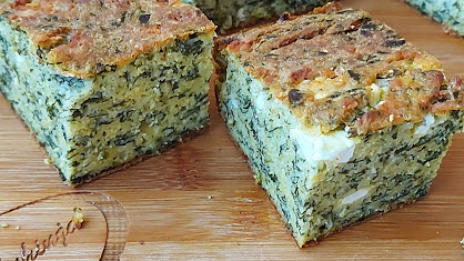 Јаја умутити жицом додати брашно и прашак за пециво, уље, јогурт, спанаћ обарен и исецкан, издробљен сир, мало соли и све добро изједначити.
