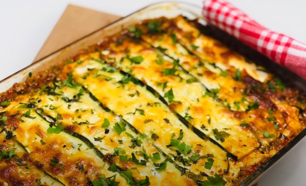 На дно ватросталне посуде (30×19 цм) ставите мало бешамела, сложите ред лазања, по њима распоредите бешамел, тиквице, нарендану моцарелу и нацепкану горгонзолу. На то ставите листове лазања и поступак поновите, тако да на задњи лист лазања ставите бешамел, нарендани сир и пармезан.