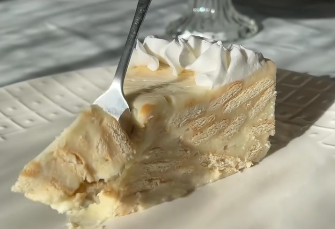 Охладити, па додати маргарин и сирни намаз (крем сир). У припремљен фил додати изломљени петит кекс. Смесу утиснути у калуп пречника 20 центиметара.