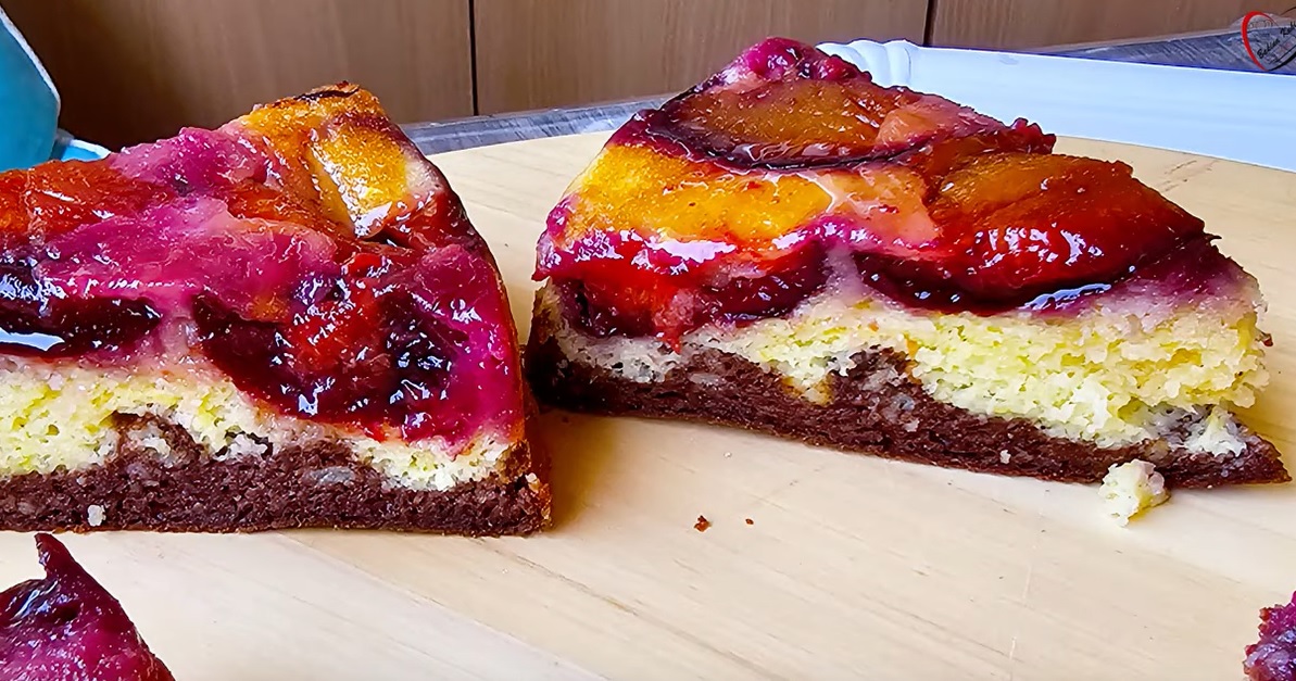 Плех обложити пек папиром, па га мало премазати уљем. Шљиве очистити и ређати на дно. Сипати светли део, па полако распоредити део какаа. Пећи на 200 степени Ц 45-50 минута.
